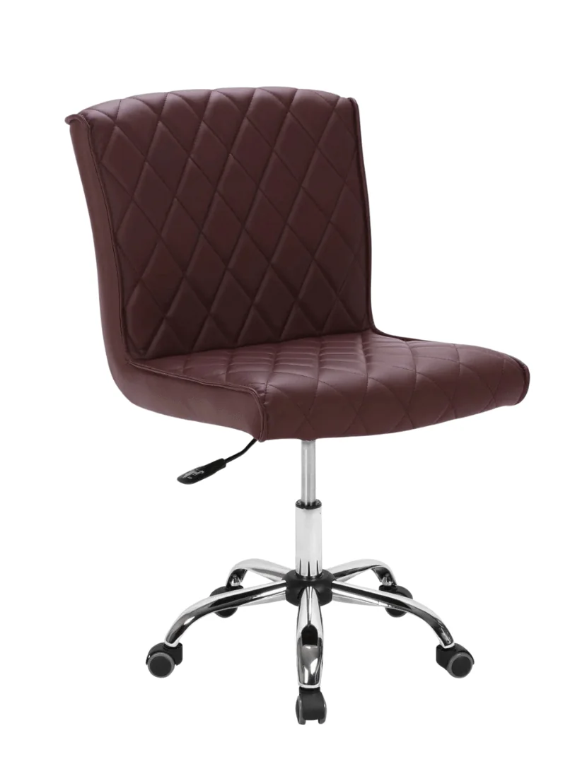 Its contoured seat and back cushion help reduce fatigue during long shifts, while the heavy-duty pneumatic lift allows smooth height adjustment from 19" to 25" for customized positioning. Available in five sleek vinyl color options, the Delia Technician Stool complements any salon décor and pairs beautifully with the matching Delia Customer Chair.